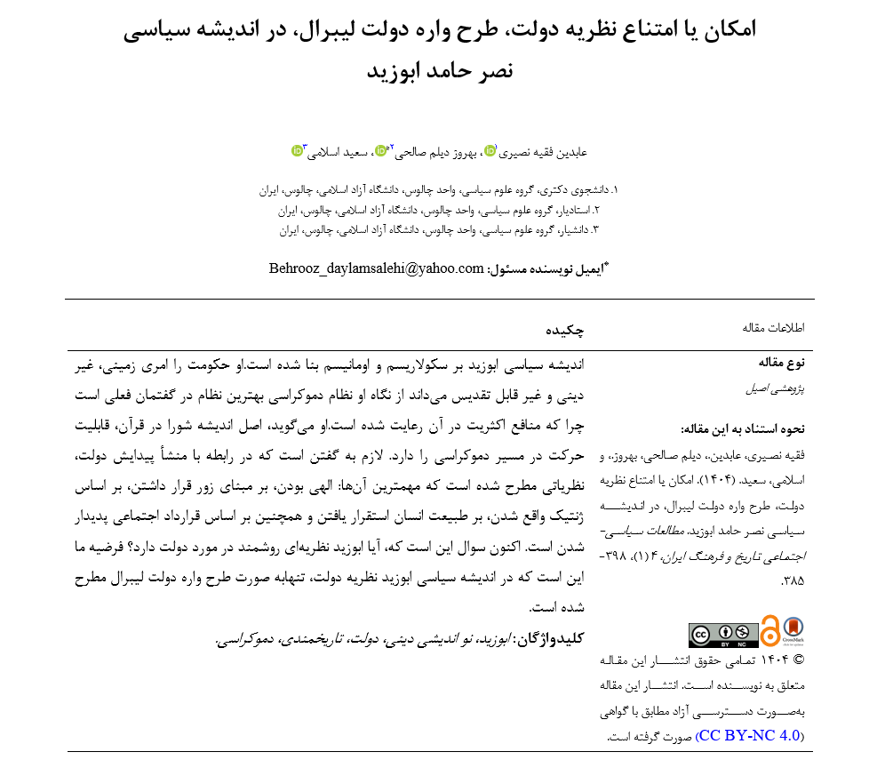 حق نشر 2025 Aabedin Faghih Nasiri (Author); Behrooz Daylam Salehi (Corresponding Author); Saeed Eslami (Author)