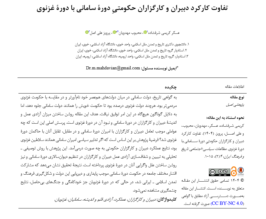 تفاوت کارکرد دبیران و کارگزاران حکومتیِ دورۀ سامانی با دورۀ غزنوی