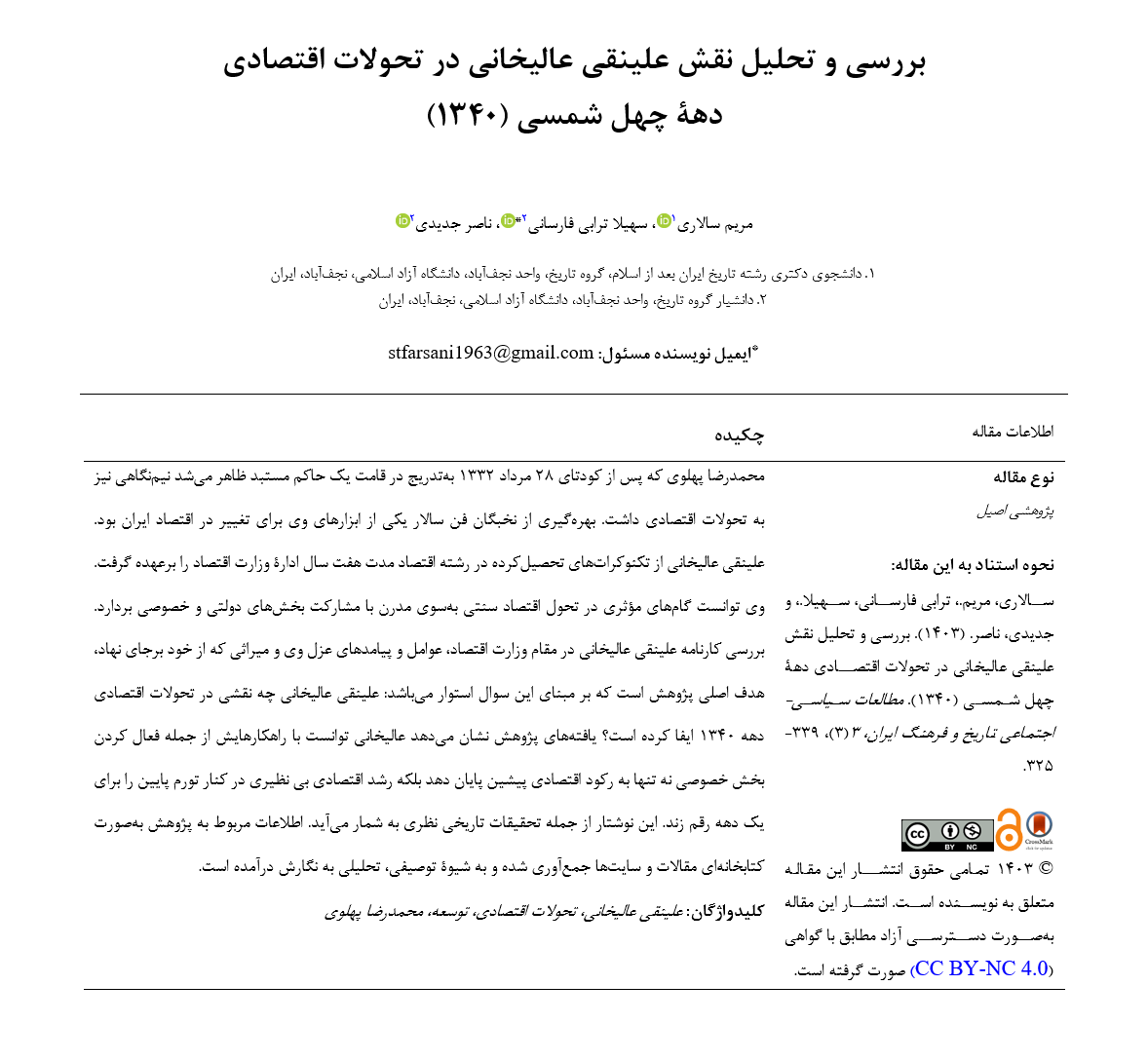 بررسی و تحلیل نقش علینقی عالیخانی در تحولات اقتصادی دهة چهل شمسی (۱۳۴۰)